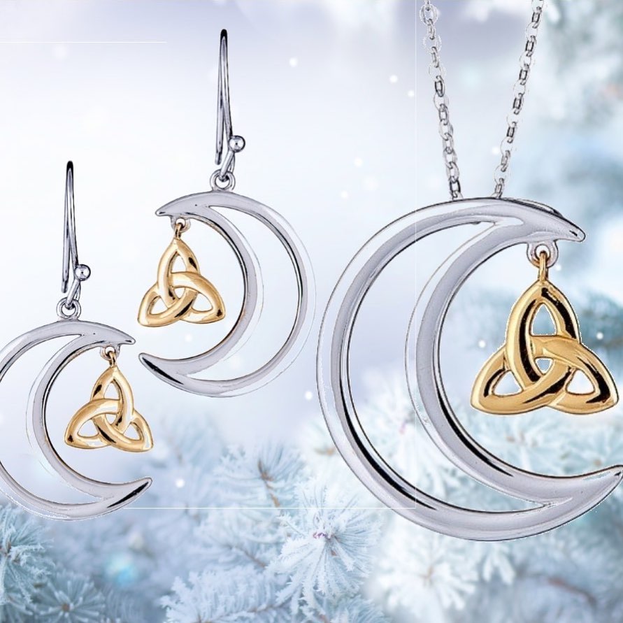 To the ancient Celts the Celtic Trinity Knot or triquetra is used often to symbolize and honor the Mother, Maiden and Crone of the neo-pagan triple goddess. An example is the Celtic Sisters Knot. The three points of the knot symbolizes the three life cycles of a woman in relation to the phases of the moon. In more recent times, when Christian missionaries arrived it became recognized as a symbol for The Holy Trinity meaning ‘The Father, The Son and The Holy Spirit’. In modern times the Trinity knot is now interpreted as the Irish love knot. The trinity knot’s interlaced and unbroken lines symbolize spiritual growth, eternal life, and undying love.